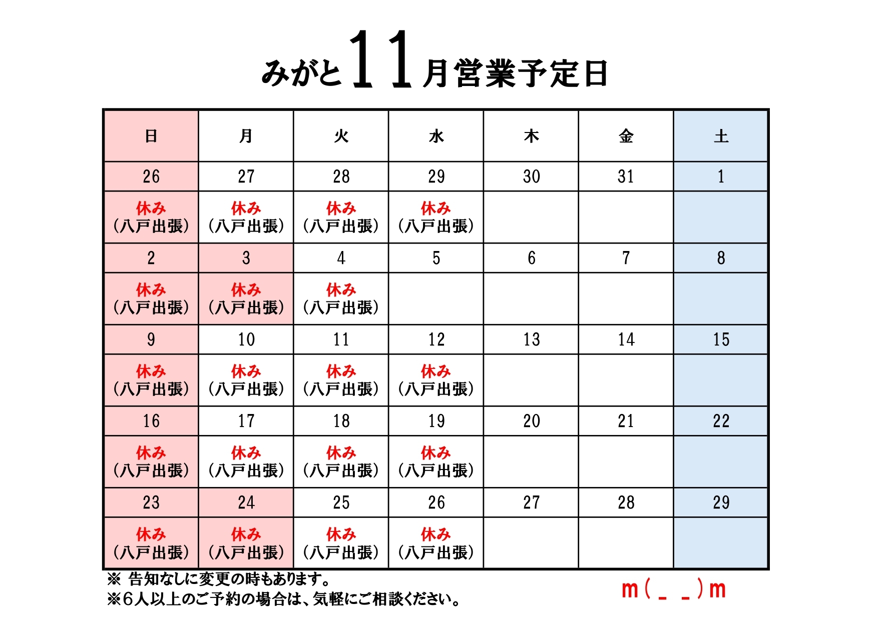日曜日、祝日、他 不定休
